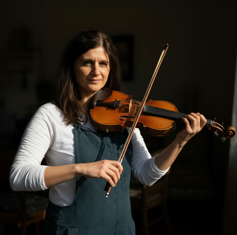 Diatonisches Akkordeon und Kontrabass kamen autodidaktisch hinzu. Heute zupft sie den Bass bei „Picking Rooster Band“ und ist unser Paganini auf der Fiddle.