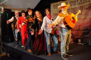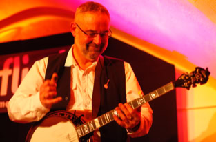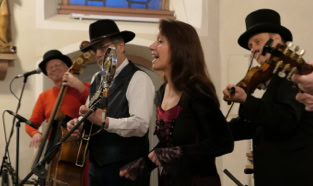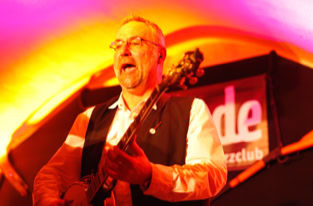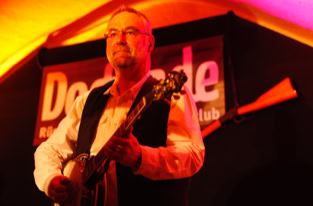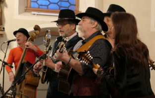 Pete Werneck, einer der bekanntesten Banjospieler, mit unserer CD und herzlichen Grüßen nach good ol’ Germany
